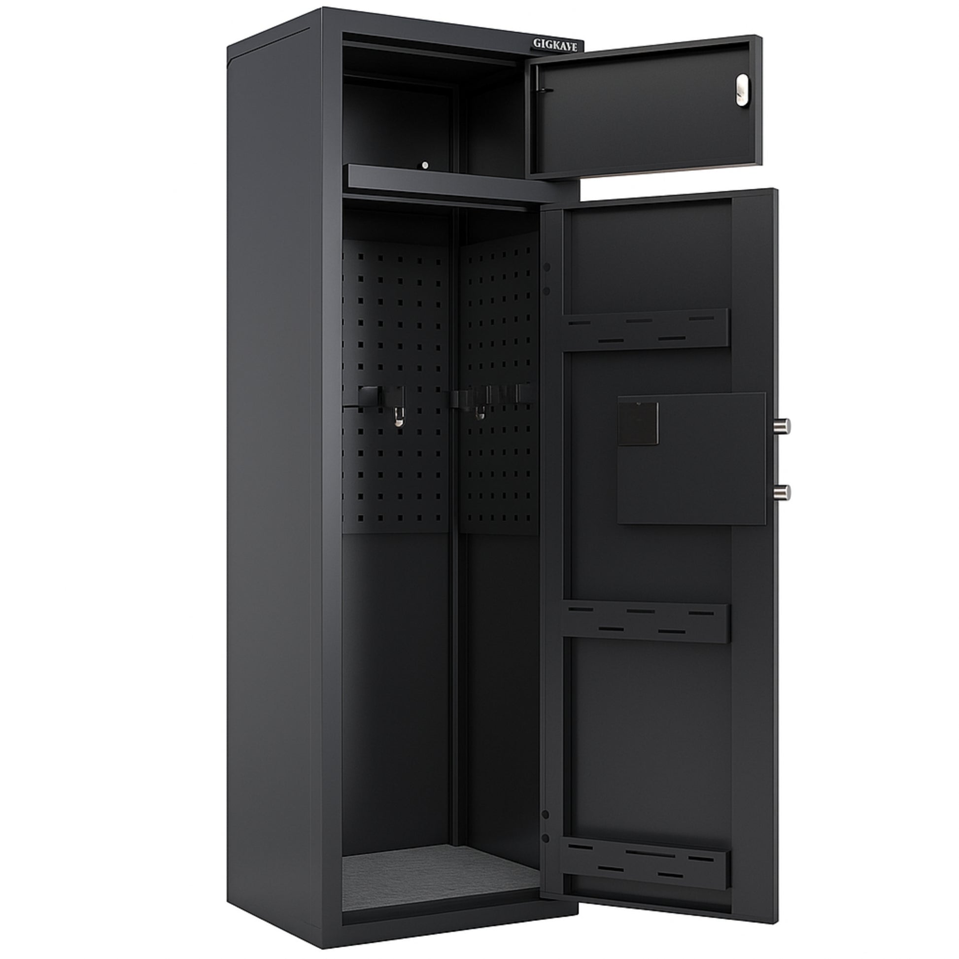 The Nighthawk Sentinel Slimline Tactical Gun Safe is designed for those who demand the best. This premium, space-efficient safe features a steel body, pegboard gear wall, motion-activated lighting, and door-mounted organizers for pistols and magazines. With quick-access electronic security and a refined matte finish, it offers a stylish and highly functional layout, perfect for secure storage in modern homes.